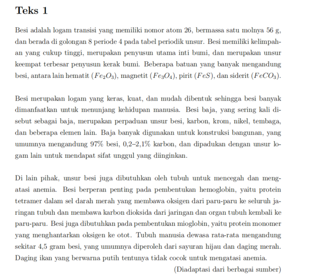 1. Konfigurasi elektron untuk unsur kimia yang dibahas dalam bacaan adalah . . .