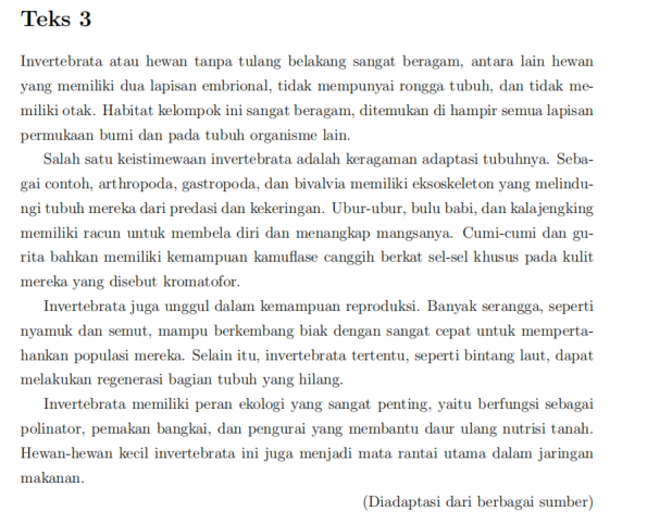 8. Menurut bacaan, yang merupakan akibat penurunan populasi invertebrata adalah ….