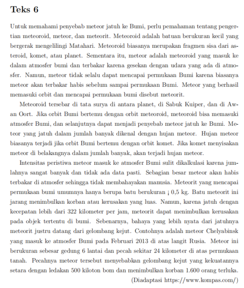 18. Menurut bacaan, pengertian meteorit yang paling tepat adalah ….