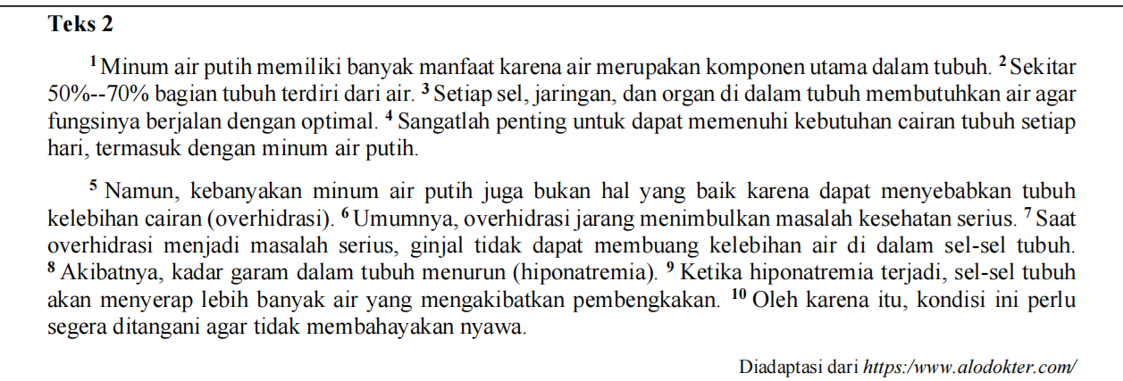 1. Apabila gagasan pada teks tersebut dipisahkan menjadi dua paragraf yang padu dan utuh, pengelompokan kalimatnya adalah ….