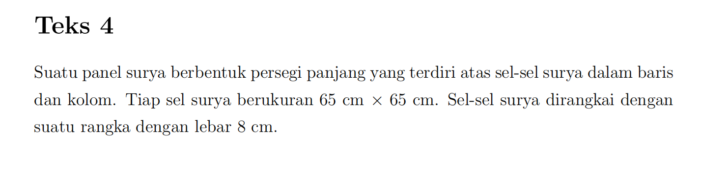 17. Misalkan banyaknya kolom sel surya adalah 4 buah dan terdapat x sel dalam