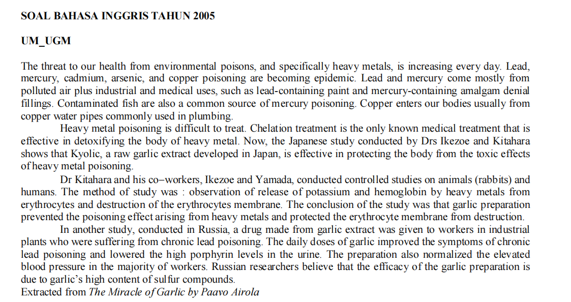 Mini TO UTUL UGM 05 Bahasa Inggris [Soal Asli]